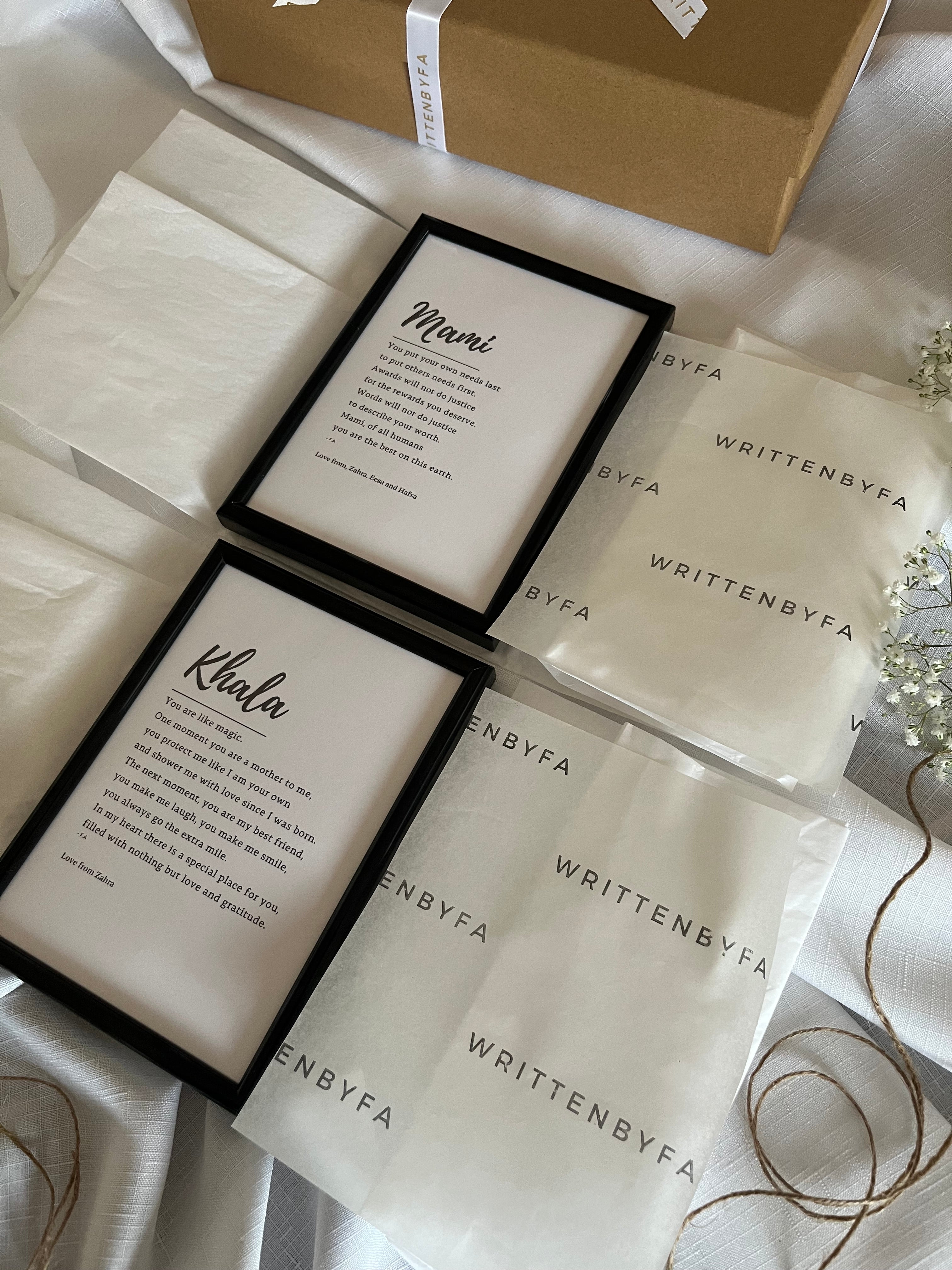 I created and sold my first products “Mother’s Day Frames” in 2017. The success of this was the catalyst to introducing more products. I began to sell frames with poems for all individuals and occasions. Following this, I started to offer the custom poem writing service, as well as candles with poetry on them.