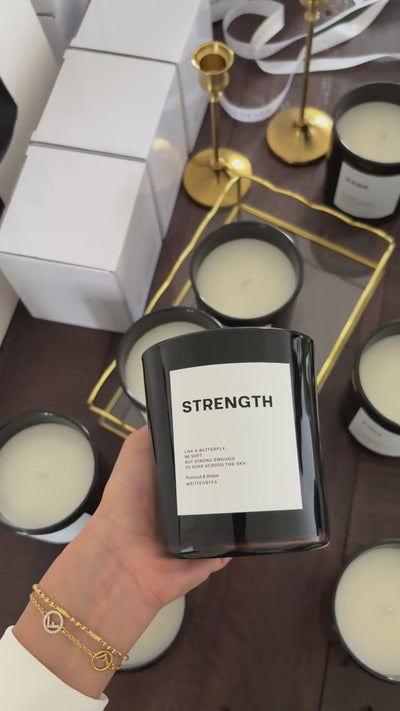 A rich Patchouli and Amber scent. Clean, minimal design. 60 Hours burn time. Packaged with a lid and branded box.